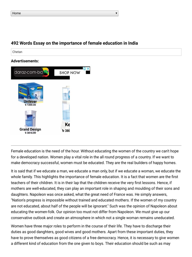 They have to go extra miles than men to prove themselves equivalent to men. People in the middle age were considering women as key to destruction so they never allowed women to go outside and participate in the social activities like men. Still in the modern age, essay on importance of education in india, women have to face many more problems in their daily life and struggle a lot to establish their career.